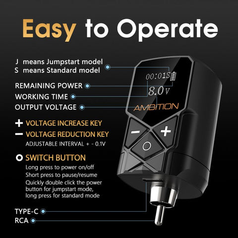 Power: The LED display will show the remaining power, and the full power will display 4 divisions. Fast charging through the matching fast-charging cable can usually be fully charged in 3 hours. Please pay attention to the change of power at any time to prevent sudden power loss from affecting your tattooing work.
