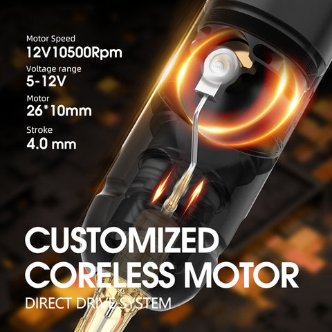 Motor: Japan Coreless Motor. Ambition Coreless motor is good with lining, shading, color packing, lettering, traditional, neotraditional.