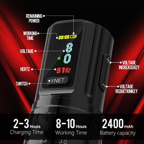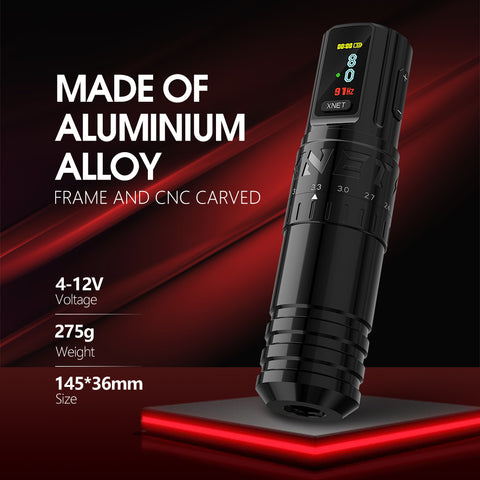 High quality material: Xnet wireless tattoo machine is made of aluminum alloy with precision CNC technology, easy to disassemble for maintenance and replacement parts. The Torch Wireless Tattoo Machine weighs 275g individually, Length: 145mm/5.7inches, Diameter: 36mm/1.5inches